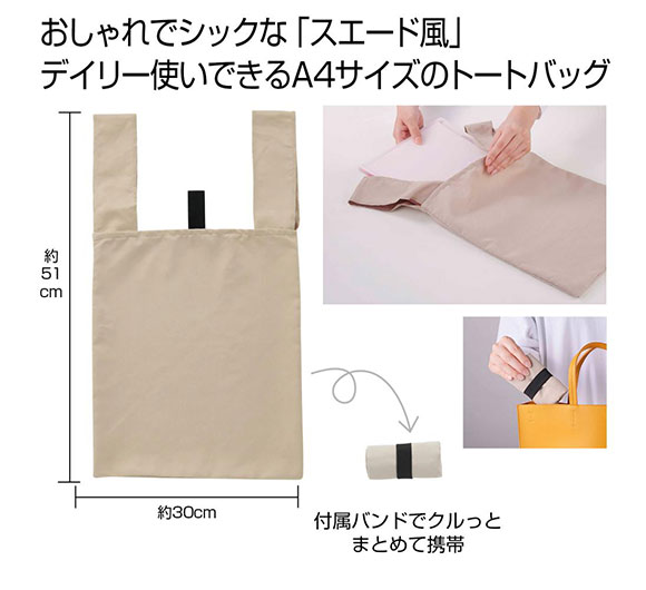 2373911|展示会や説明会での資料配布用などに非常におすすめのA4トートです。くるくるっと巻いて停めるとコンパクトに携帯できる点も◎!カラーバリエーションは全2色展開です。