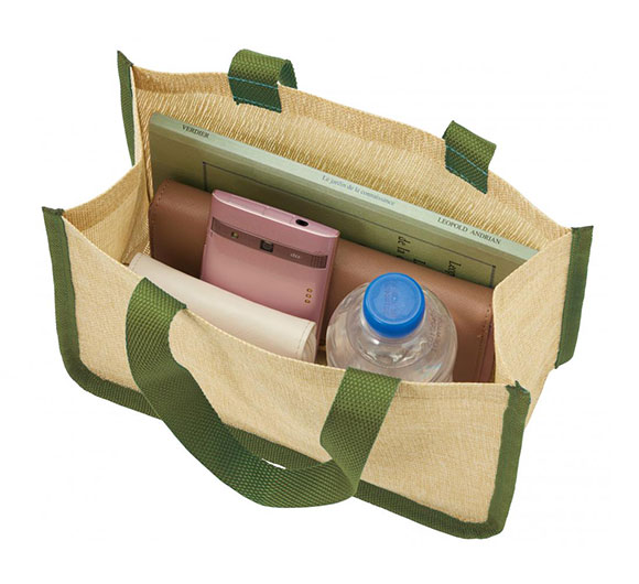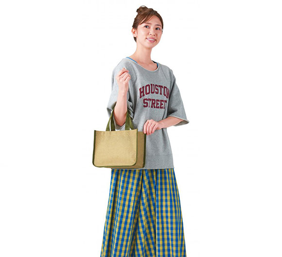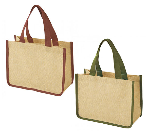 リゾートの雰囲気を取り入れた、ジュート風のコンパクトバッグ。お散歩用のワンマイルバッグや、お弁当やドリンクボトルを入れてランチバッグとしても重宝します。オリジナルの名入れやプリントをすれば、女性向けのノベルティグッズやアーティストの物販品などに幅広く活用することができます。