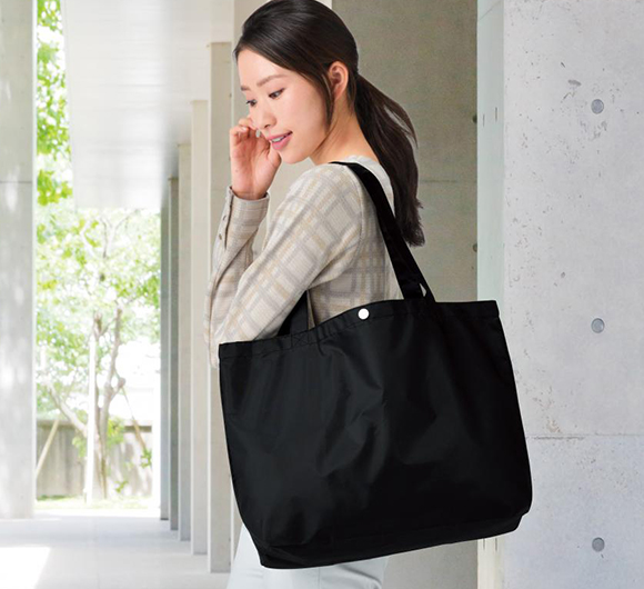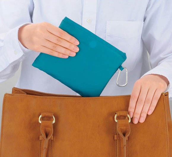 - カラビナ付きのポーチが便利なビッグエコバッグ。