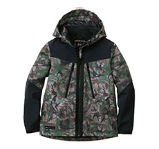 防水防寒ウェアなのにうごきやすいストレッチ性の高い高機能迷彩ブルゾン。