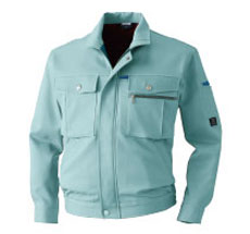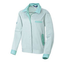 再生ポリエステルと綿の混紡素材を使用し、制電性にも優れた長袖ブルゾンです。