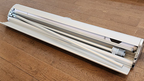 キラメックで使用しているターポリン生地です。両端部分がたわんでおりません。