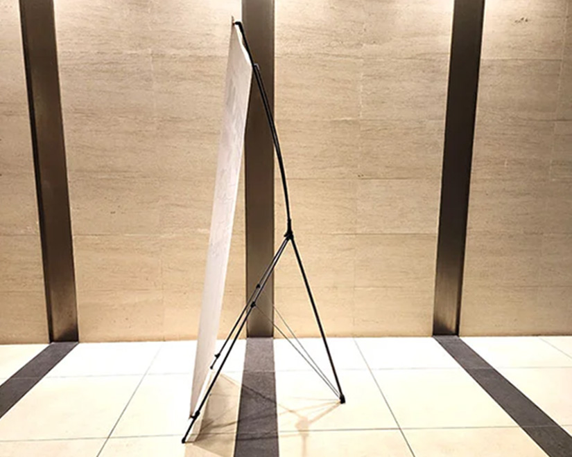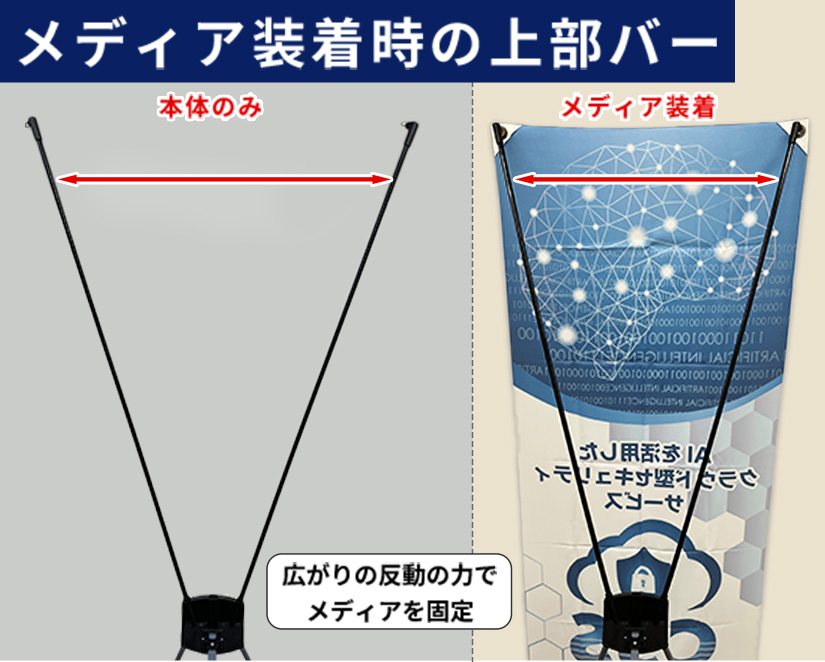 メディア部分を除いた、パーツの総重量はわずか950gです。超軽量なので店舗の模様替えでバナースタンドの位置を移動させたり、催事会場に持ち運ぶ際も苦になりません。