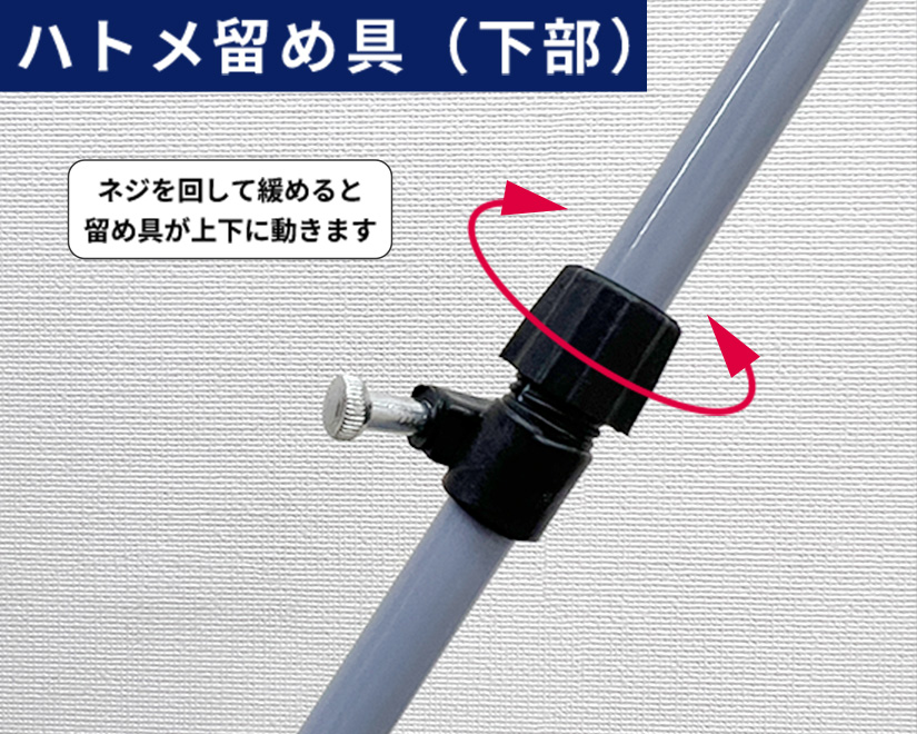 - 上部パイプ・接続パーツ:ブラック、脚:グレー(ハトメ部分はブラック)