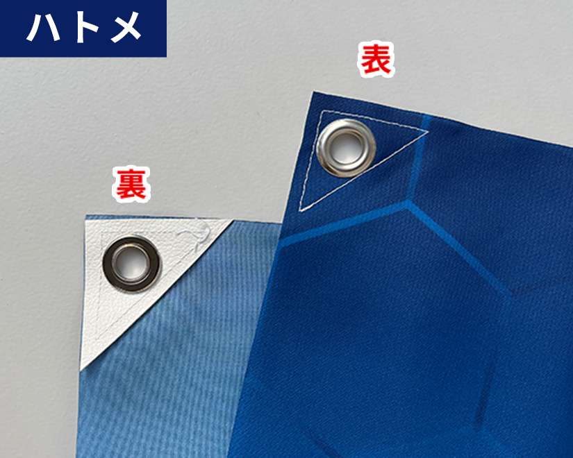 メディア設置時にハトメをかけるフック部分へ強い負荷がかかりますと、破損の原因となります。取り扱いには十分ご注意ください。