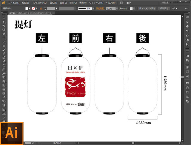 尺四長とも呼ばれる13号長型サイズのビニールタイプをボディに、カッティングプリントでお仕上げいたしましたが、非常に綺麗で見栄えも良いオリジナル提灯に仕上がったかと思います。
