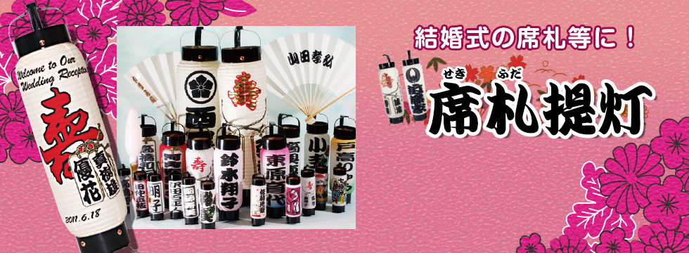 席札提灯とは結婚式や披露宴、同窓会や記念式典など祝いの場でネームプレートの代わりに使用される他、席上装飾やお土産としても活用されるマルチアイテムです。