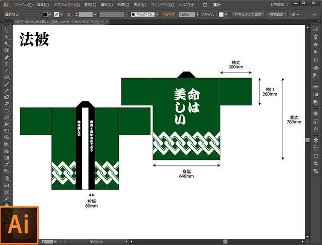 デザインをご確認いただいた上で、さらに細かい打ち合わせをし、そして完成した法被がこちらになります。