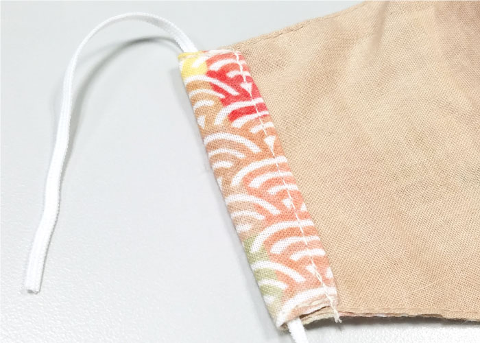 マスク裏面 裏地はベージュ色ですのでファンデーションなどの色移りも目立ちにくい仕様です。