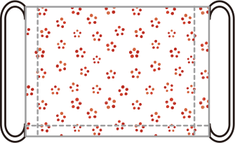 マスク表面 立体タイプと違い、プリントに邪魔な縫い目がどこにもないため、全面を使ったデザイン向きです。