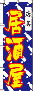 居酒屋用のぼり旗のデザインテンプレートです。見本の店名部分をお客さまご指定の名前に差し替えて、オリジナル制作いたします。文字数や大きさ、間隔や書体に関してはご相談ください。