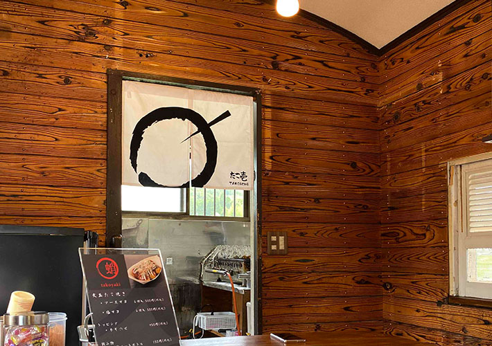 滋賀県甲賀市信楽町にございます『たこ壱』様からご注文をいただき、キラメックでオーダー製作いたしました、店内の間仕切り用オリジナルのれんです。