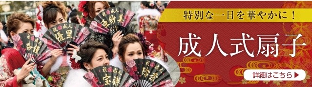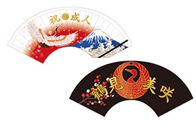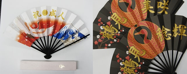 成人式に参加する際の衣装小物用として人気の高い扇子を、中学校の頃の仲間と作りたい、というご注文をお受けし、オリジナルデザインでお作りさせていただきました。