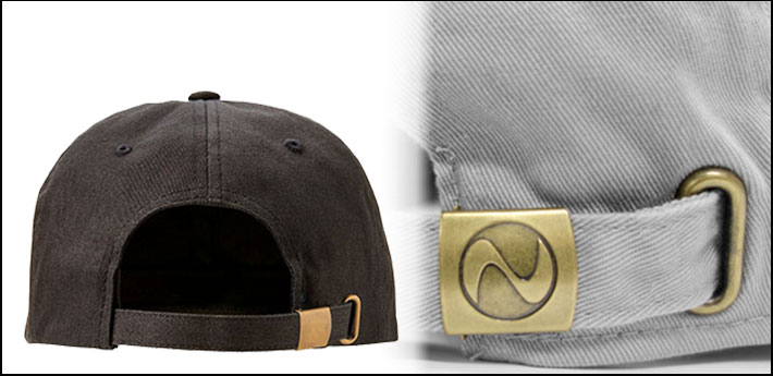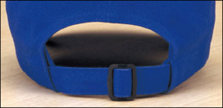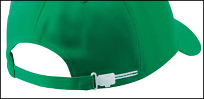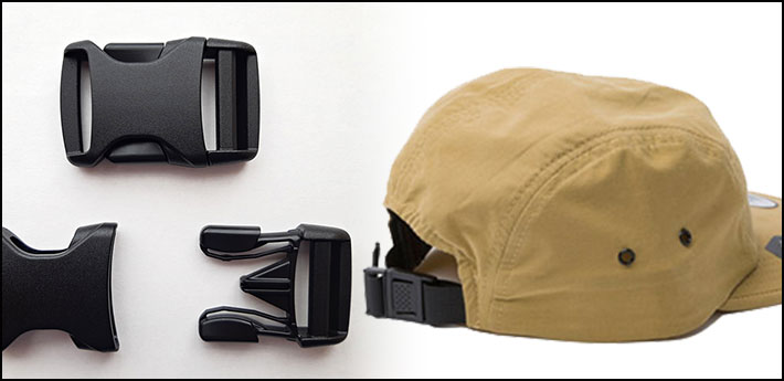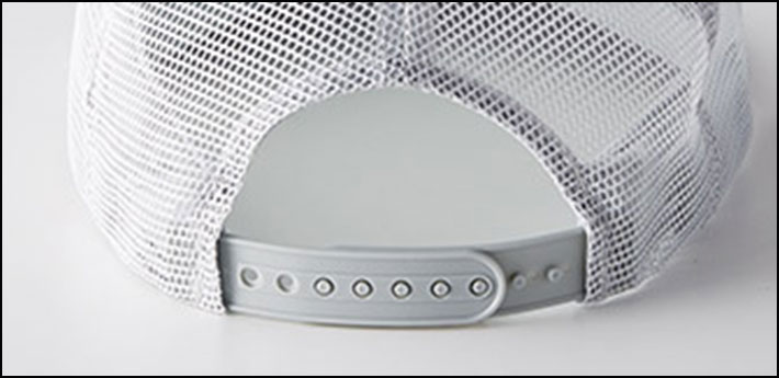 帽子のアジャスターの定番、アメリカンアジャスター。突起部分を穴にはめ、その位置でバンド部分の長さを調整できます。