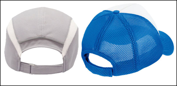 マジックテープが帽子のバンド部分に縫い付けてあるタイプで、樹脂カンがついているタイプもあります。