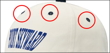クラウンに開けられた通気孔のことで、菊穴とも呼ばれます。これは帽子をかぶることで頭部に籠ってしまう熱を逃がすためのものでもありますが、同時に被った際にクラウンが膨らんでしまわないように、その中に溜められた空気を抜く役割もあります。