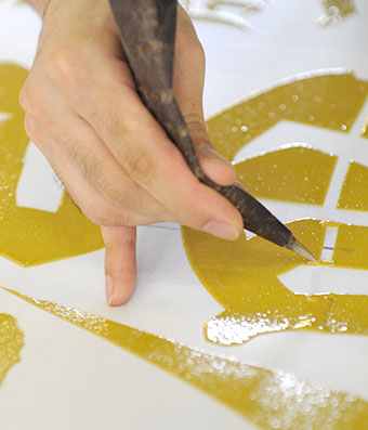 本格的で伝統的な染めから現代的な印刷まで、各製法の工程をご紹介いたします。これらの技術を用いて、ハイクオリティーなオリジナルのれんをオーダー製作させて頂きます。