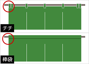 オリジナル暖簾をのれん棒に設置する際に、のれんにチチ、ないし棒袋といった仕立てを作る必要があります。また、巾というスリットを施したり、縫製の仕方などがあります。