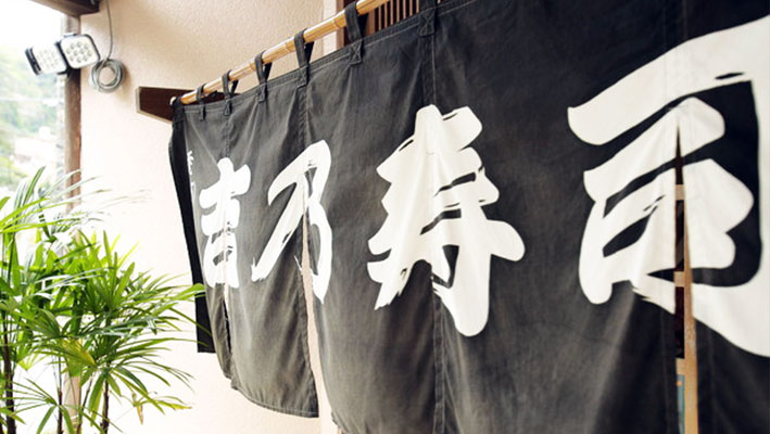 例2:古民家カフェ・寿司屋など落ち着いた雰囲気の店の特注オーダー綿のれん