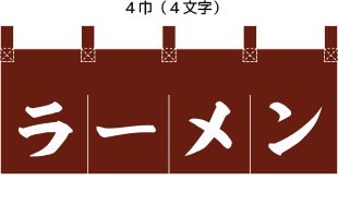 のれんに入れるデザインによっては、自ずと巾数が決定する事もあります。例えば巾ごとに一文字ずつ文字を入れる場合、スリット部分に文字がかからない様にするために、文字数で暖簾を分割することになります。そば屋なら3巾といった具合です。