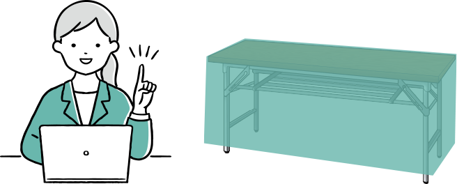 オリジナルテーブルクロスのデザイン入稿の際にご活用いただける、テンプレートをご用意しました。以下のテンプレートはW1800×H700×D600mmの、一般的な会議用テーブルに使用できるテーブルクロスのサイズになっています。他のサイズをご希望の際は、お気軽にご相談ください。