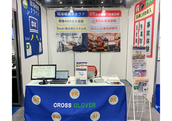 『クロスクローバ株式会社』様からご注文をいただき、キラメックでお作りいたしました、展示会用のテーブルクロスとタペストリーです。