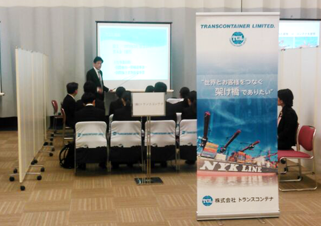 国際輸送サービス等の事業を行う『株式会社トランスコンテナ』様よりご注文をいただき、弊社でオーダー製作いたしました、合同就職説明会で使用するブース装飾用のオリジナル椅子カバーです。